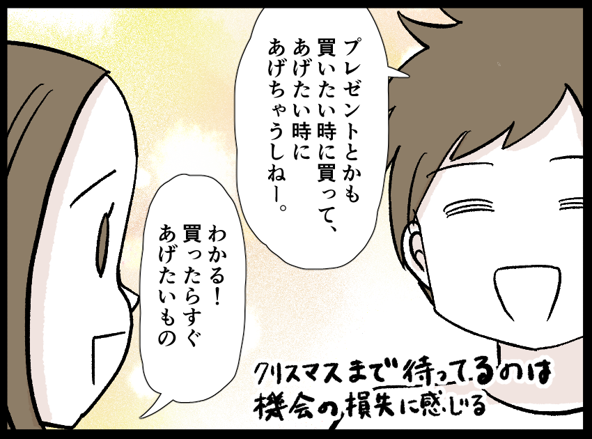 人の心を失った夫婦のクリスマス 2023年12月20日 07:45 合理的が行き過ぎているはるお達夫婦は、特別な日のためのプレゼントとかが苦手です。プレゼントにゲームを買ったらすぐに遊ばせてあげたくなってしまうし、お洋服を買ったらすぐに着させてあげたくなってしまうのです。それにマイクラで遊んでさえいれば、子供自身も満足して、それほど欲しいものもないようですしね。マイクラってすごいな。 「生活」カテゴリの最新記事 にほんブログ村 < 前の記事次の記事 > コメント コメントフォーム 名前 コメント 記事の評価 リセット リセット 顔 星 情報を記憶 コメントを投稿する